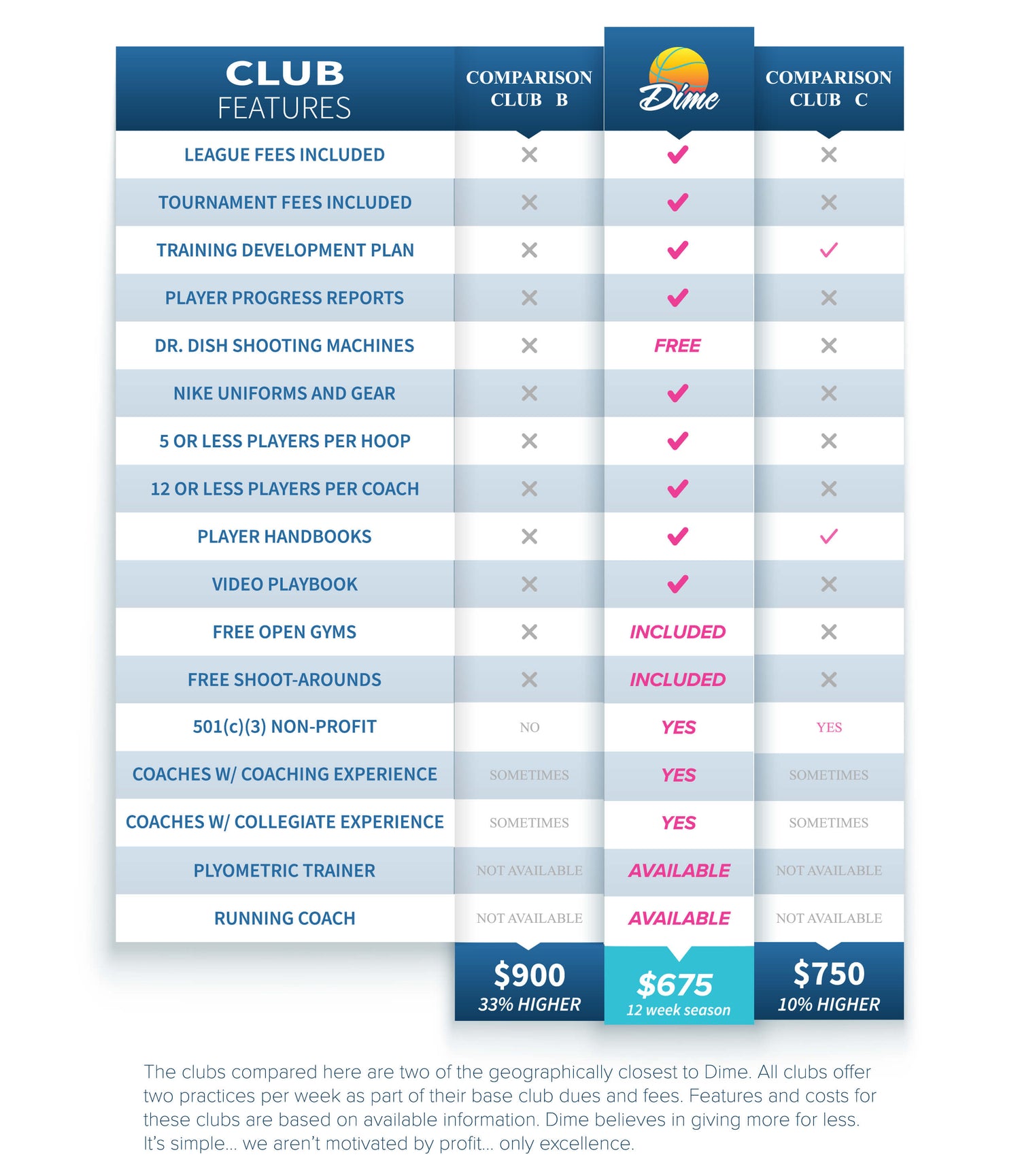 Because we are unrivaled in Encinitas, Carlsbad, and Coastal North County for premier basketball training, exceptional value, and competitive pricing. By being a 501(c)(3) we are able to provide more for less, because we aren't motivated by profit... only excellence.